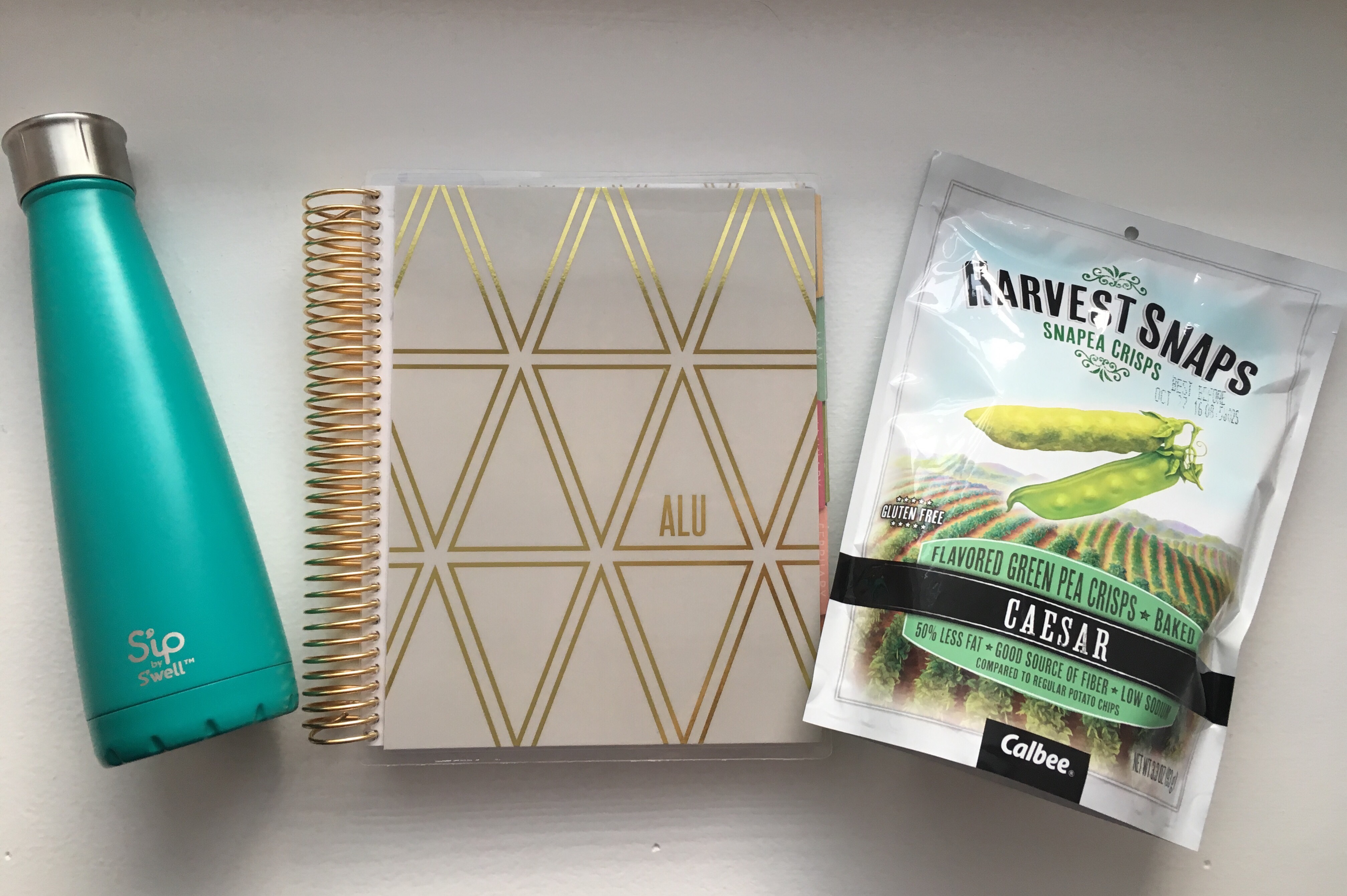 S’ip by S’well, Jelly Bean Green Stainless Steel Water Bottle 15oz, $24.99. Purchased from Target! Erin Condren Life Planner, price varies. Snap Pea Crisps, Caesar, $1.99.