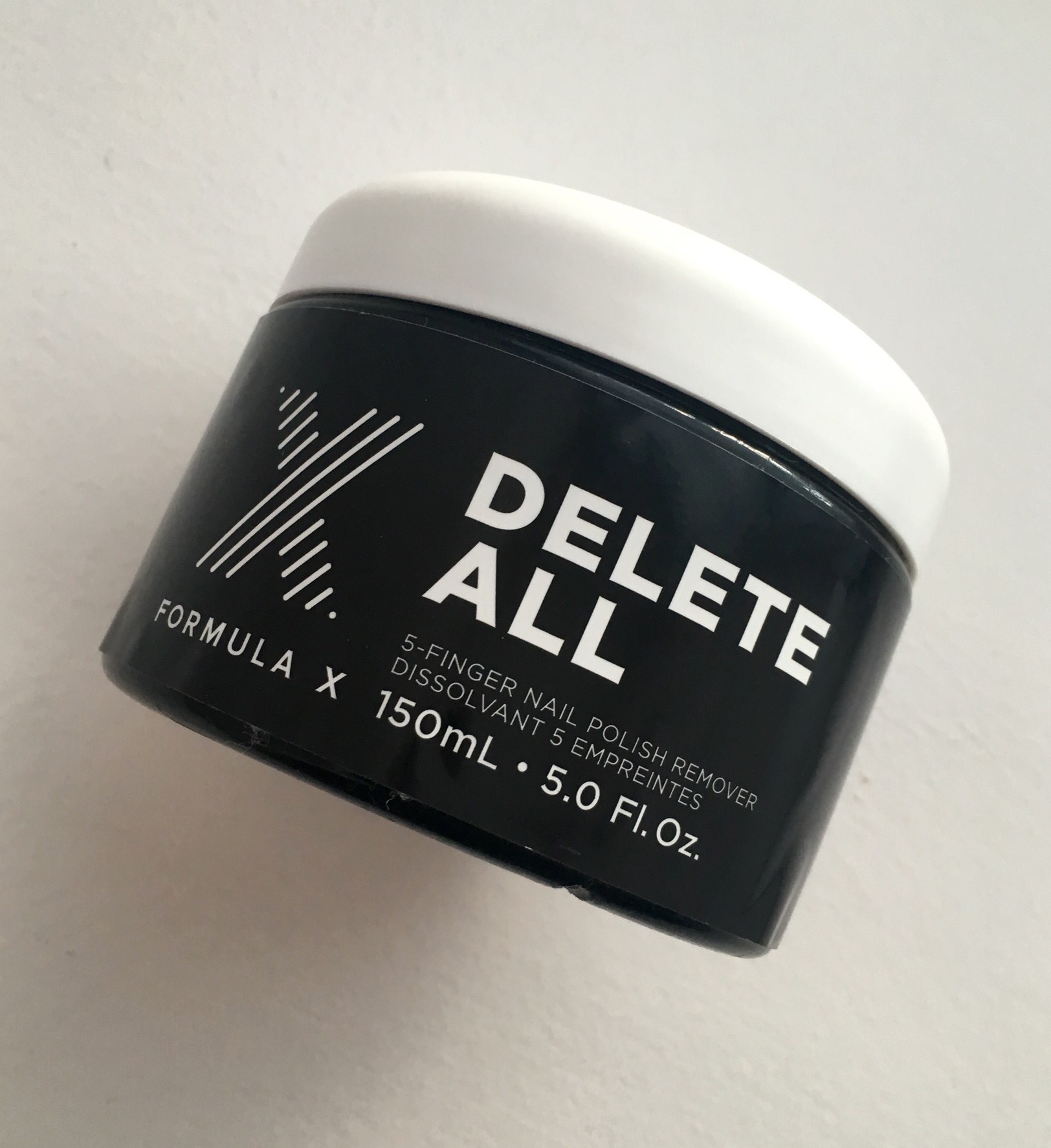 I just want to preface this review by saying, a $15 nail polish remover seems absolutely ridiculous and overpriced. Typically, I spend around 4-8 dollars on a bottle of nail polish remover, usually purchasing the “Pure Acetone” formulas. My hunt for the perfect remover came about after I noticed myself getting super lazy about taking off my nail polish because I truly dread the process of scrubbing my nails and having my cuticles burned. I wanted a gentle formula that worked quickly and could most importantly, remove all traces of glitter polish! Some of the different glitter’s I own will not fully detach from my nail, even with standard remover, so I wanted my next purchase to truly remove all traces of sparkle and color. I started browsing the top rated products in the nail category on Sephora.com one day and came across the “Formula X Delete All – 5 Finger Nail Polish Remover.”
