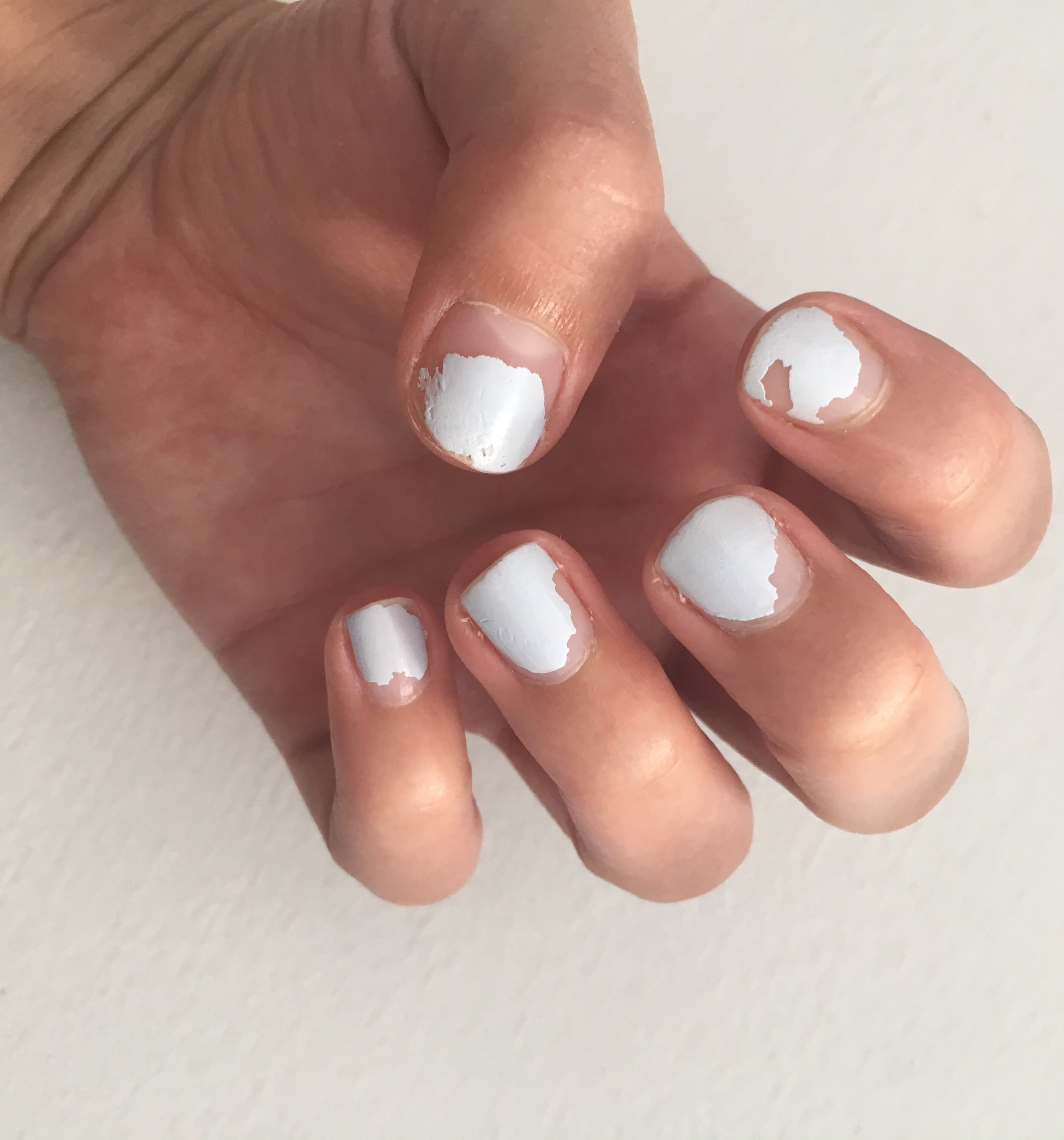 To start this review, I want to point out how awful my nails look. Let’s just address that this was going on two weeks and I nervously scrape my nail polish off when stressed. I did feel like this was a good example of how powerful (or not powerful) the formula would be! Now we shall proceed to the uplifting and renewing part of this process, the removal! I began by following the exact directions from Sephora.com and dipped my fingers in the sponge for 10-15 seconds. It was suggested to gently rub against the sponge wall during this time.