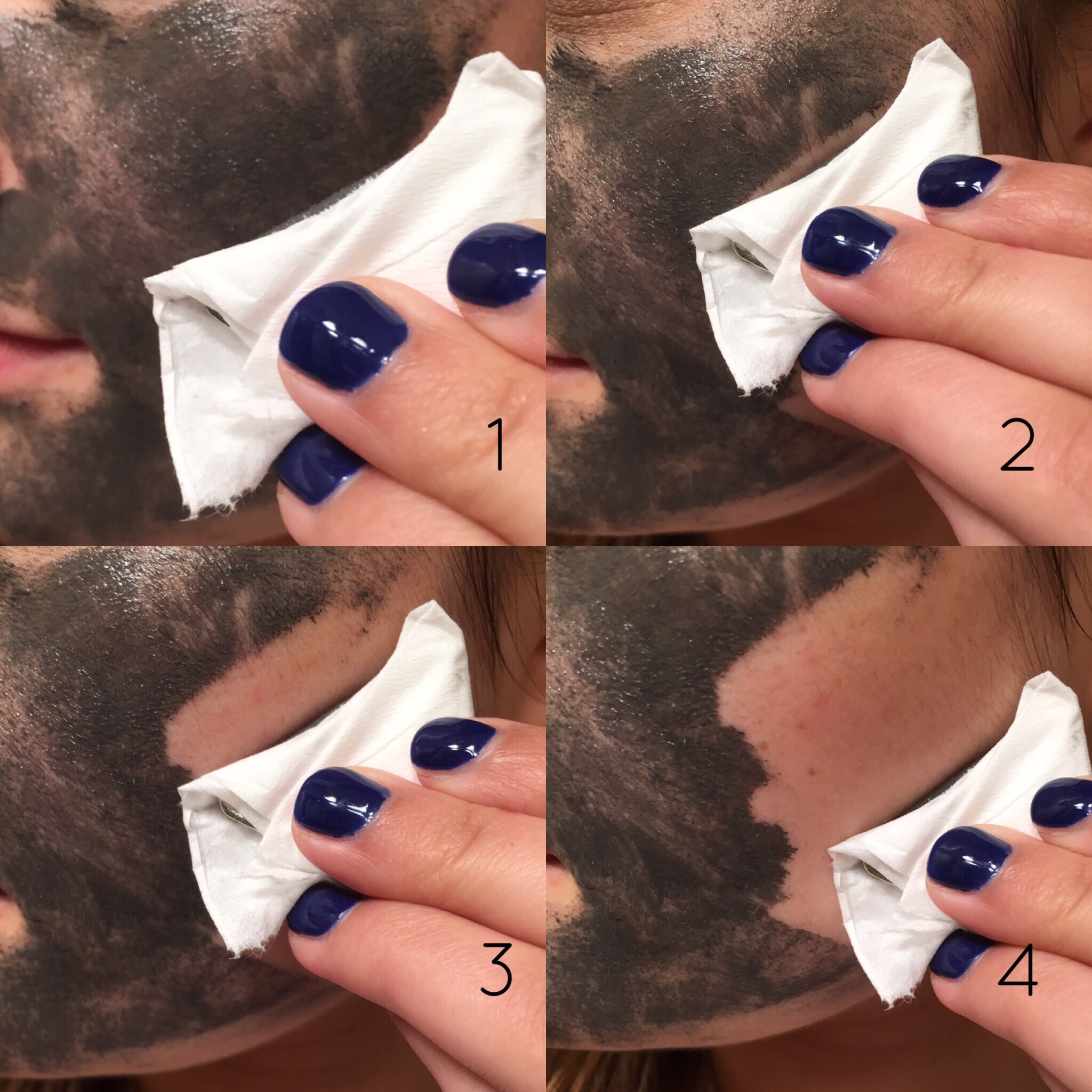 Next I took the magnet and wrapped it with a tissue as instructed! It is a surprisingly strong magnet, it’s even advised to not use it if you have a pacemaker or other medical devices/implants! So I smoothed it over my skin and was in shock at how instantly it lifted the mask off my face! It made a clean line of removal and did not smear or move around. I was so impressed with this process, I rushed over the rest of my face, waiting for it to not work, but it removed the entire thing all on the same magnet!