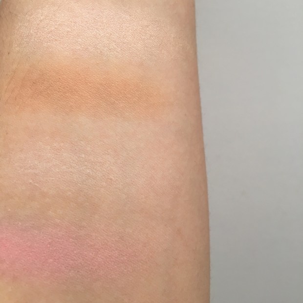 Beneath the blush is the new “Sunshine in a Compact Matte Bronzer!” This product is meant to warm up your face and provide a subtle, bronzed glow to your entire complexion. This particular shade is a little light for my medium skin tone, but I think it would be perfect for anyone with a fair-to-light complexion! I will say this was a slight disappointment to me because it’s really not my kind of bronzer, but it is useable to blend out a contour or to quickly swipe on my eyes for some subtle definition. It is a very long lasting formula and blends beautifully on the skin, it’s just a really light color that you have to take time building up!