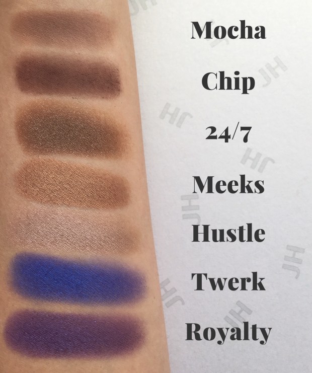 Row One is such a beautiful, natural array of colors that I imagine would work as perfect "every-day" shades. I am IN LOVE with the colors, "Faint" and "Sissy" and I was super impressed with the matte shades as well. I know I'll be using "Silk Creme" as a transition shade for many of my makeup looks! Row Two is my absolute favorite because it looks like a warm sunset and I love those orange-bronze tones on my eyes! "Queen" is such an attention-grabbing, metallic gold and I can see myself using this every day all over the lid. I also love the mattes in this row as well, they all swatched so smooth and were very evenly pigmented. Row Three is comprised of warm, cranberry-red colors. I can see myself hitting pan on each one of these shadows in the Fall, whenever I want those sultry, burgundy toned eye looks. Row Four starts to incorporate color with "Royalty" and "Twerk." Although I'm not obsessed with wearing bright colors on a daily basis, I do love adding pops of color on my lower lash line and these rich jewel tones will be perfect for that! Unfortunately, I did find that the shade "Mocha" was a bit chalky and I had a hard time building up the swatch to appear more smooth. Row Five is probably my least favorite, not because the shadows are bad, but because I don't think I'll personally get a lot of use out of the more green shades. I can see myself playing around with "Diva" and "Enchanted," but I don't think the bright turquoise colors are something that would flatter my eye color or match my personal style. Who knows though, I may end up absolutely loving them once I play around more with the palette!