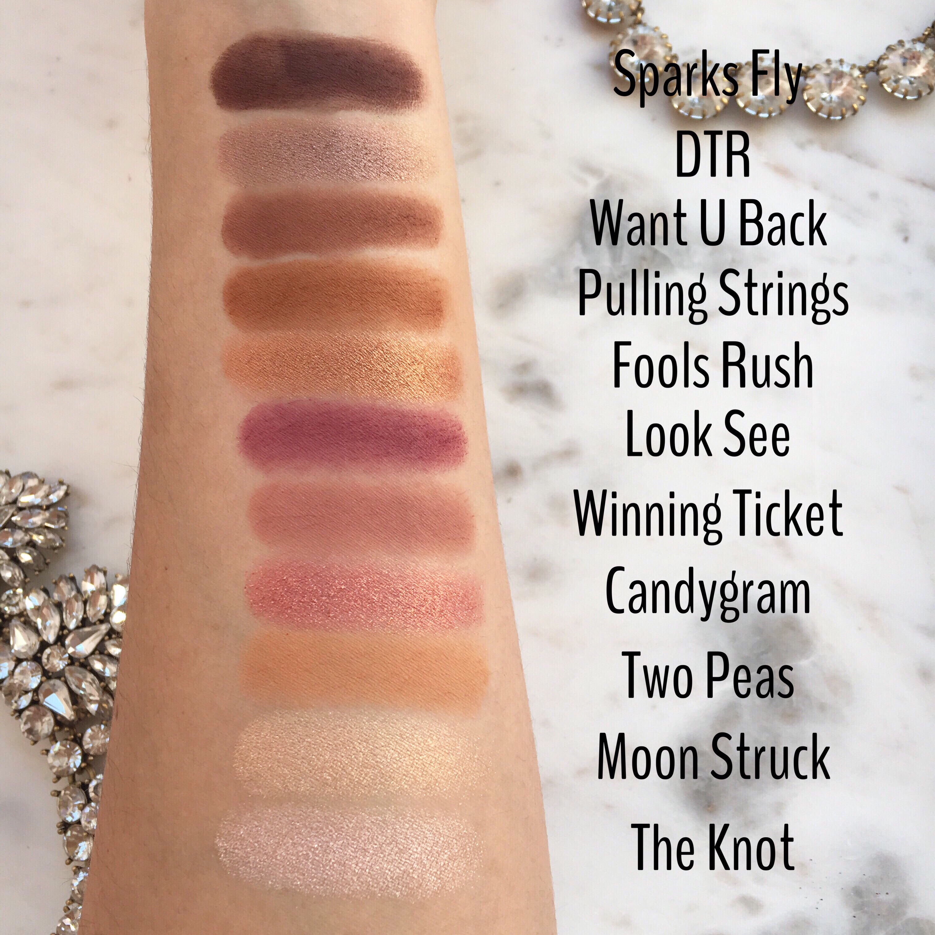 • The Knot – A pearly, champagne metallic shadow with rose gold and silver shimmer. I really love this for an inner corner shade to brighten and widen my eyes!