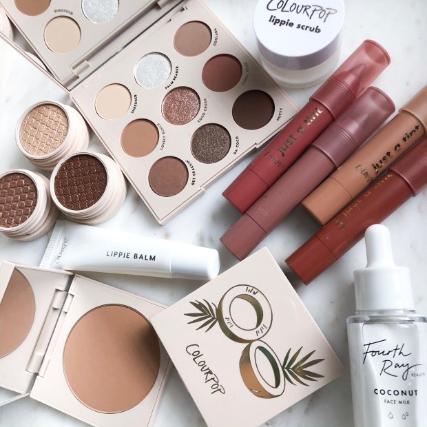 I really try to stay mindful about my makeup purchases and remember that I don’t “need” any of these new releases. Whenever I saw this new Going Coconuts Collection from ColourPop… I threw caution to the wind and purchased every single item! If you’ve followed my blog for awhile, you know that I tend to wear really natural, brown toned eyeshadows and nude lipsticks. This collection included a very wearable 9 pan eyeshadow palette with all neutral shades, 3 super shock shadows in all bronze tones, 2 bronzers, and 4 sheer lipsticks that are all natural flushes of color. It was a no brainer that I picked this entire set of products up on the day it launched! I also added their Lippie Balm and Scrub, and their Coconut Face Milk to my cart too! I needed to get the whole tropical vibes experience. I have only used these products for 2 days in a row, so this is definitely a “First Impression Review,” but with the holidays quickly approaching, I wanted to show you guys what I loved and what I liked from this ColourPop Coconut Collection for you to gift, or for you to treat yourself with!